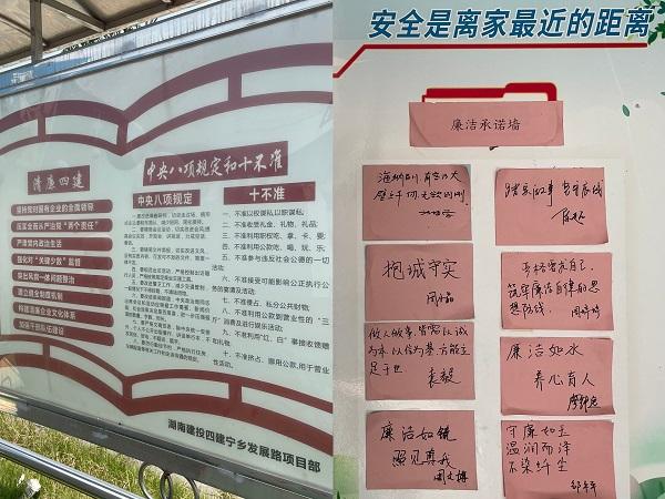 創(chuàng)新打造“廉建+”文化品牌,將廉潔教育融入項目日常。設立“清風宣傳欄”,定期更新中央紀委最新反腐動態(tài)、行業(yè)廉政新規(guī),配以簡明解讀,從“制度約束”到“價值認同”,以文化軟實力筑牢思想防線;建立“廉潔承諾墻”,上傳與家屬的合影,并將廉潔承諾手寫上墻,以“小家”撬動“大家”,用情感紐帶將“他律”轉(zhuǎn)化為“自律”。